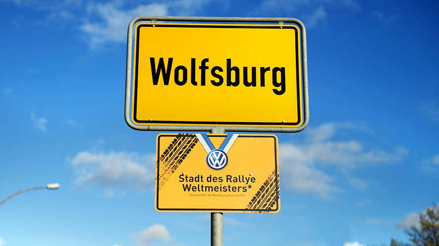 In questa immagine possiamo notare una vecchia fabbrica Volkswagen, presente nella città di Wolfburg, fulcro delle attività della casa tedesca a partire dagli anni 50. Come potete vedere, sopra il mega simbolo, è presente la scritta campioni costruttori WRC 2013.