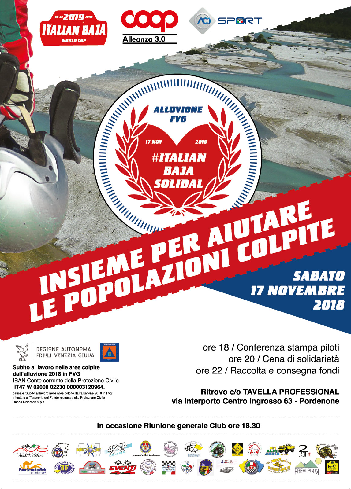 Nota ufficiale del Fuoristrada Club 4×4 Pordenone: “In questo momento, con tutte le criticità che il nostro territorio deve affrontare, non vogliamo aggiungere alcun peso ulteriore alle Amministrazioni, alle Forze dell’Ordine, alla Protezione Civile e ai volontari che si stanno prodigando per cercare di limitare i fortissimi disagi alla popolazione. Così abbiamo deciso di stoppare […]