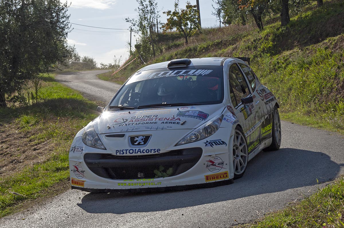 Assoluto primattore di classe e di gruppo è stato Alessio Scorpioni, navigato da Antonio Bucci ed al volante della Peugeot 207 S2000. Fermo da due anni, il driver di Pistoia Corse ha giocoforza faticato in avvio, dovendo togliersi di dosso la ruggine dell’inattività e misurandosi con il fondo reso viscido dalla pioggia caduta prima della gara. Nelle prove più veloci Scorpioni è riuscito ad esprimere al meglio le potenzialità del motore aspirato della 207, centrando un 5° posto assoluto sulla PS5, e chiudendo la gara 12° assoluto e con la soddisfazione di vedersi assegnato il Memorial Walter Fedi, quale miglior equipaggio di Pistoia Corse.