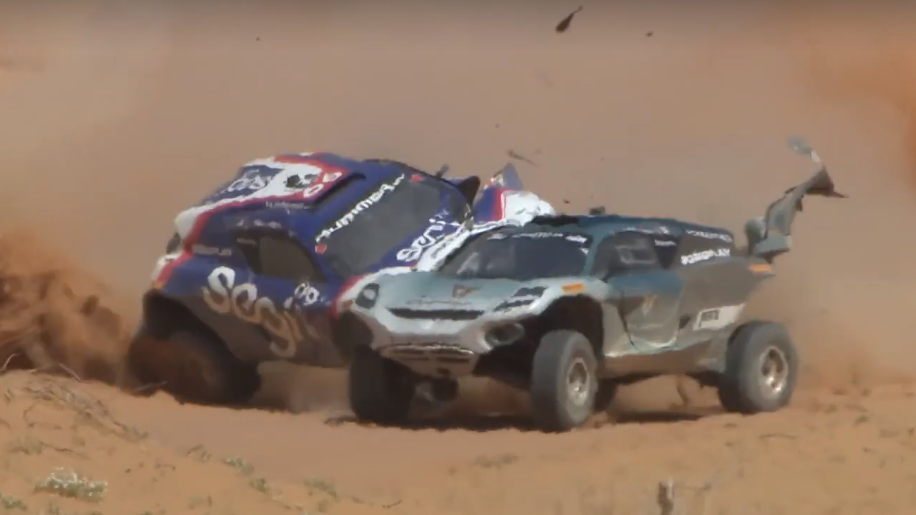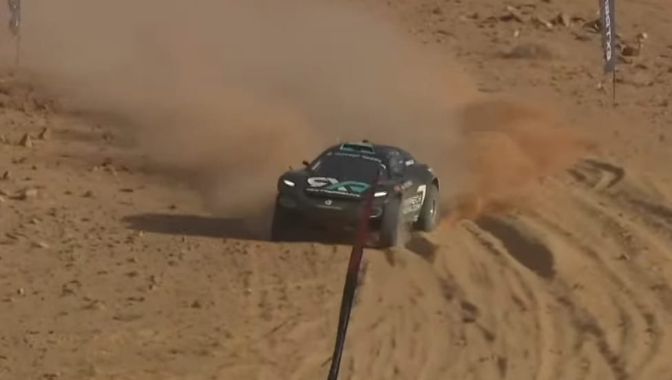 Abbiamo assistito anche alla replica degli Shootout, ovvero la gara per coloro che non si sono qualificati alle “fasi finali” di questo Desert X-Prix. Alla partenza si sono presentati i soli team Cupra e Ganassi. Dopo una prima fase di controllo condotta dal team Cupra e Mattias Ekstrom, la battaglia si è fatta accesa dopo il cambio pilota. Lo specialista dell’off road Kyle LeDuc si è letteralmente lanciato all’attacco della rivale rivale Hurtgen, un po’ in difficoltà, e nel momento di sferrare il colpo ha tamponato violentemente il posteriore del SUV grigio marchiato Cupra mettendo di fatto fine alla sfida nell’ultimo giro. Un inizio disastroso per Ganassi che dopo due incidenti e un problema tecnico non ha trovato pace in questo primo evento. Di certo non si può non dire lo stesso del team Cupra, protagonista nel sabato con il botto della stessa Hurtgen. Peggio ancora è andata al team Veloce Racing che non è riuscito a riparare l’Odissey per la gara di oggi dopo il terribile crash di Sarrazin.