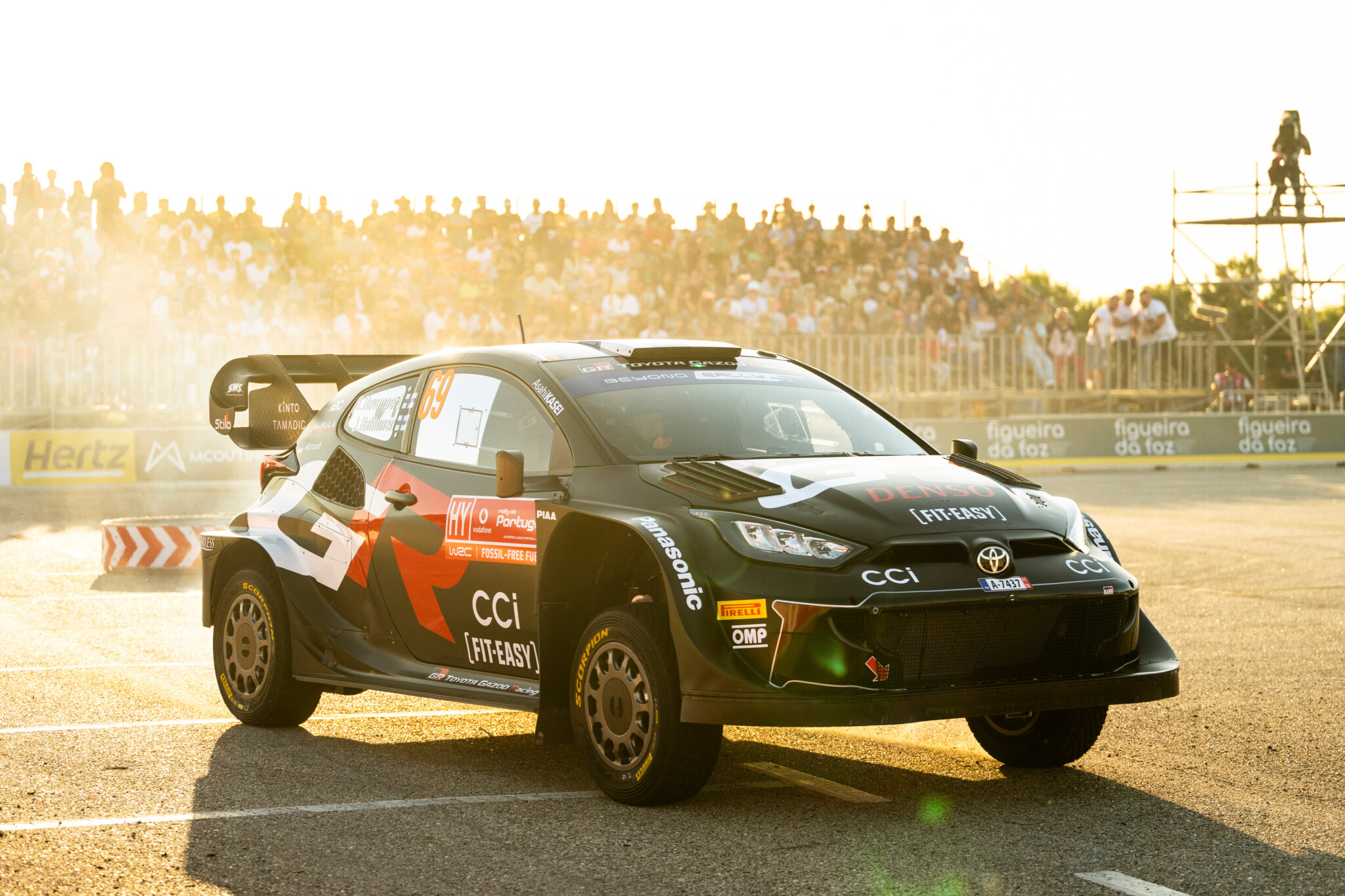 Takamoto Katsuta, leader del mattino, completa il podio provvisorio tutto Toyota di questo venerdì, distanziato (si fa per dire) 4,7″ dalla vetta, mentre Ott Tanak con la prima Hyundai I20 Rally1 è quarto, “lontano” 5,4″ dal bi-campione classe 2000.
